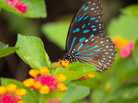Dark Blue Tiger Butterfly on Lantana flower