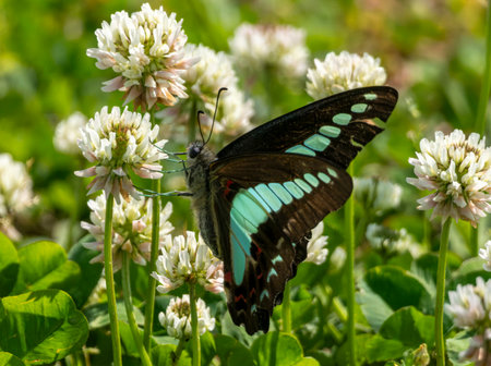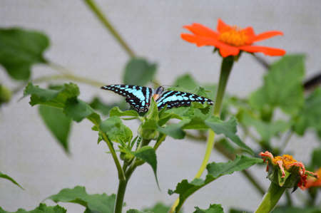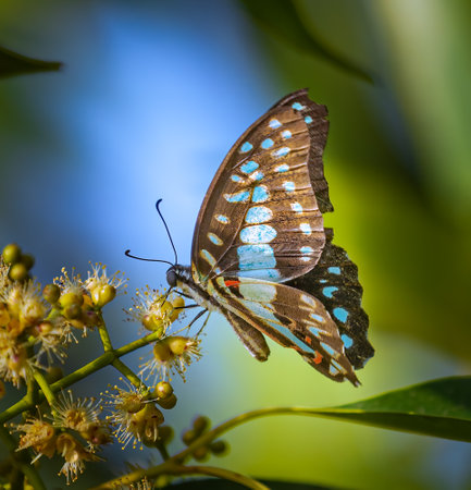 Butterfly Graphium agamemnon on the flowers