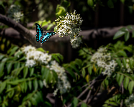 A Blue Jay Butterfly on flower tree
