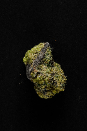 Olivine peridot extreme macro close-up against black background.
