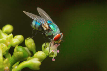 Flies in a close-up macro shoot, Blow fly, carrion fly, bluebottles or cluster fly