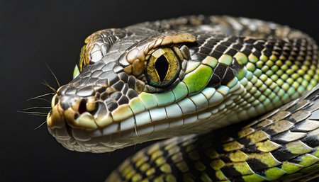 Majestic snake posed elegantly against a dark background in a striking display of natures beauty and detail
