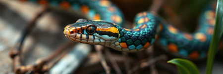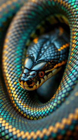 Captivating Coils Vibrant Serpentine Patterns in Closeup of a Colorful Exotic Snake in its Natural Habitat