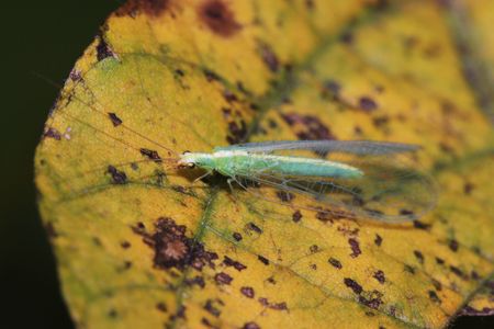 Macro of profile lacewings (Chrysopa) on leaf