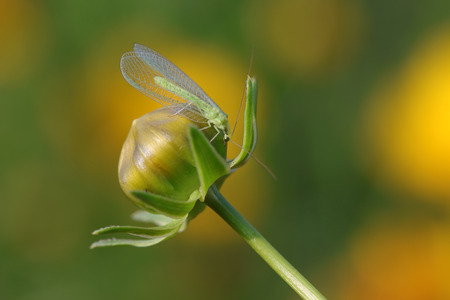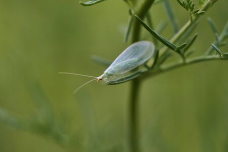Typical Green Lacewing of the Genus Ceraeochrysa in a flowering plant