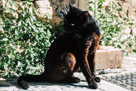 Limassol Cyprus May 05, 2020 View of domestic cat living in the streets of Limassol in Cyprus island