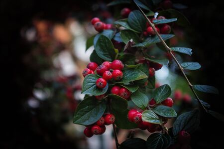 Fabulously beautiful flowers on a tree branch. Crimson flowers.