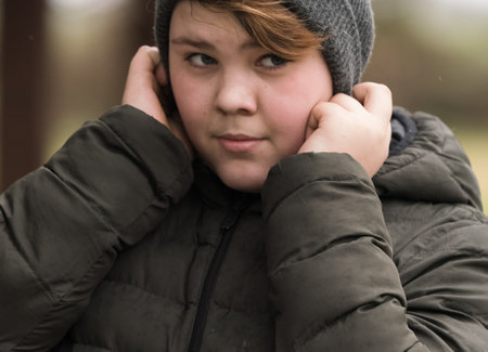 Head shot portrait of disabled teenage boy with intellectual disabilities. Generative AI