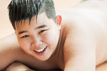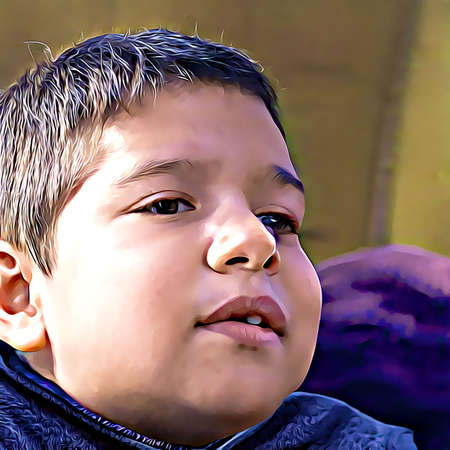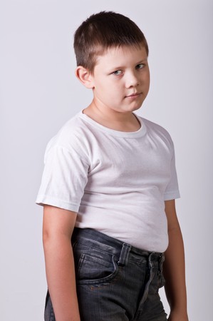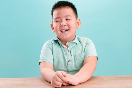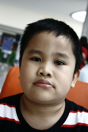 adorable Caucasian fat boy smiling , Portrait of little boy elementary school.