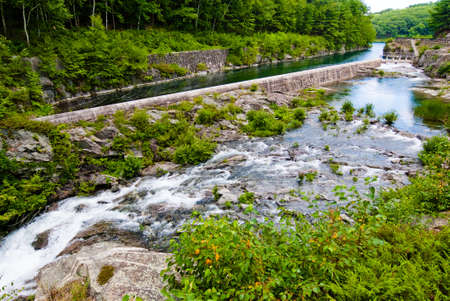 Small cascading waterfall in a creek taken in Biei, Japan.