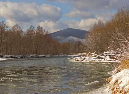 Landscape with winter mountain river