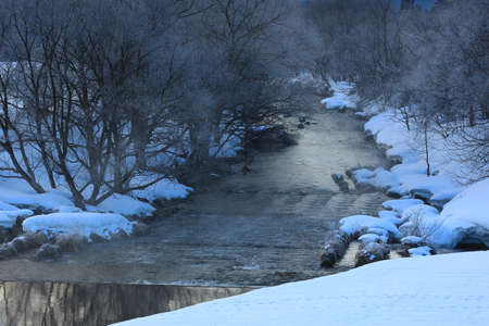 Small river at winter with snow