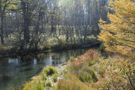 Beautiful autumn landscape with colorful forest on the bank of the river