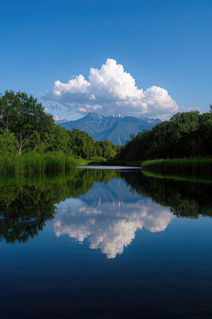 a stunning photograph captures the serene beauty of wolding river korea and hancheongnam. the image showcases reflections and mirroring, with nature-inspired motifs in shades of light green and green. shot with a nikon f2 camera in 32k uhd resolution, the composition is eye-catching and professionally captured. this captivating photo belongs to the manapunk genre and is available on unsplash. ai generated