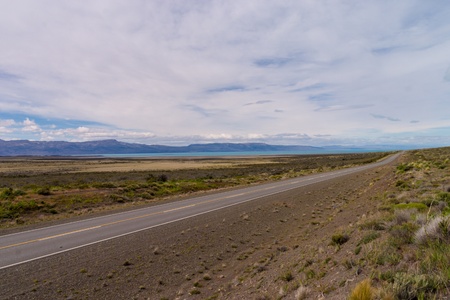 Lake Viedma with endless road in Argentina Patagonia