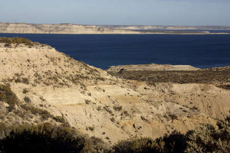 New gulf landscape from cerro avanzado viewpoint, puerto madryn, chubut province, argentina