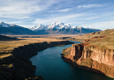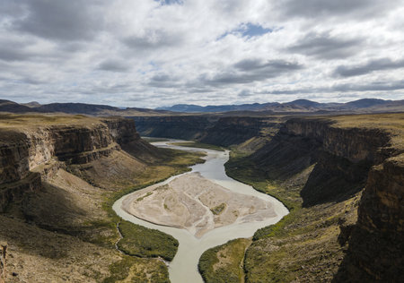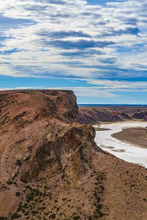 Aerial view of unique arid rocky landscape environment located in the argentinian patagonian in Santa Cruz province, Argentina