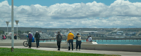 Puerto Madryn, Argentina; December 29 2022: Sunny day at waterfront boardwalk at puerto madryn city, chubut province, argentina