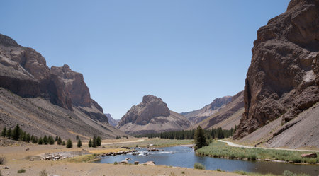 beautiful road in the field between the borders of chile and argentina.