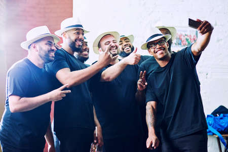 Immortalizing the moment. a group of young male friends taking selfies.