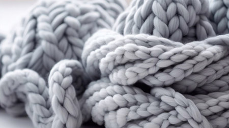 A close up of a large rope made out of white yarn, AI