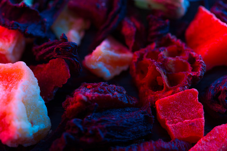 tea welding with fruit close up. neon light