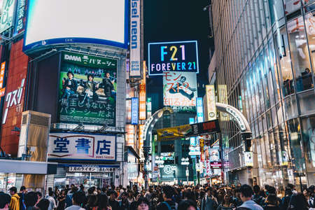 Tokyo, Japan, October 2017: Tokyo Shibuya crossing at night in the famous district of Shibuya