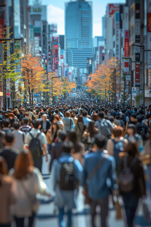 A bustling Tokyo intersection showcases the vibrant city life and pedestrian dynamics.
