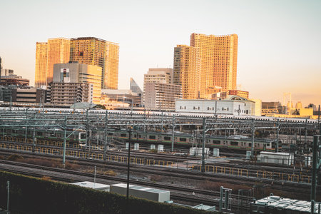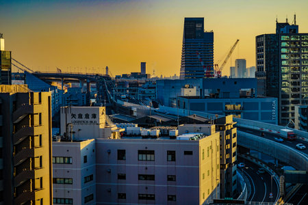 Downtown railway dyed in the setting sun. Shooting Location: Minato Ward, Tokyo