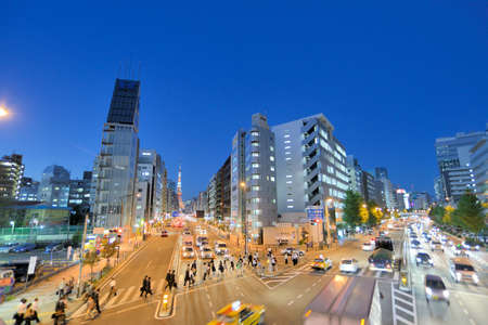 Tokyo, Japan - January 08, 2020: Tourists and Local People walking on the Beautiful Tokyo street among passing Cars in the Night time