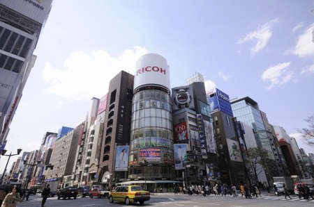 TOKYO - November 28, 2015: The Ginza District November 28, 2015 in Tokyo, Japan. Ginza extends for 2.4 km and is one of the world's best known shopping road districts.