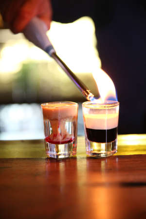 layer alcohol drink on bar. cocktail