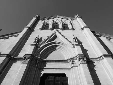 San Pellegrino Laziosi parish church in Turin, Italy in black and white