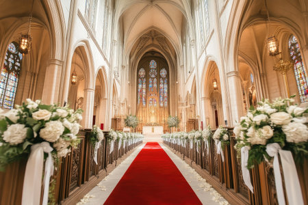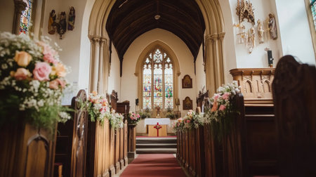 Elegant Floral Decor Inside Historic Church During Daytime Ceremony