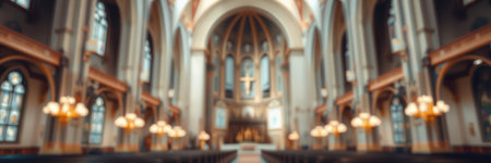 Abstract blurred background with interior of Katedra Sw Jana Chrzciciela or Cathedral of St John the Baptist in Wroclaw, Poland.