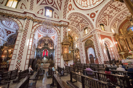 The interior of the Saint Francis Monastery and the Basilica Cathedral of Lima, otherwise Lima Cathedral, is a Roman Catholic cathedral located in the Plaza Mayor of downtown Lima, Peru.