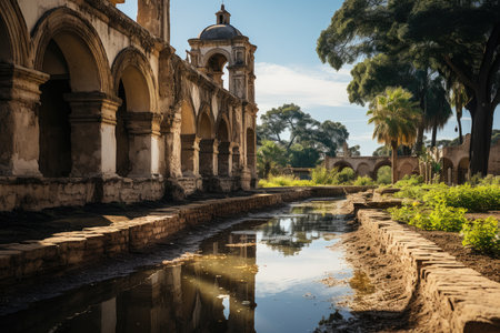 Spanish missions by the San Antonio River, San Antonio, USA., generative IA