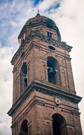 A steeple of the Monasterio de Santa Catalina (Monastery of Saint Catherine) on Santa Catalina Street in the city center of Arequipa, Peru. Arequipa is World Cultural Heritage Site.