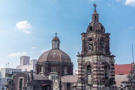 Historic church in city of Tepoztlan, Mexico - April 2023. High quality photo