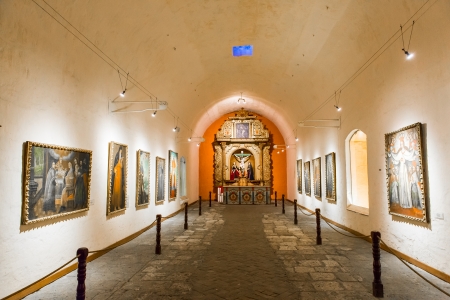 Altar and icons in old church in Arequipa, Peru, South America. Arequipa's Plaza de Armas is one of the most beautiful in Peru.