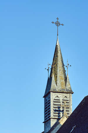 Tower of the medieval church in the Champagne region in France
