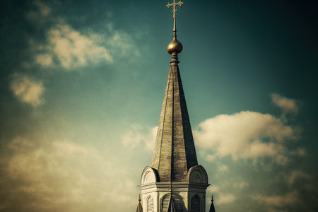 Holy Church Steeple with Sepia Color Background