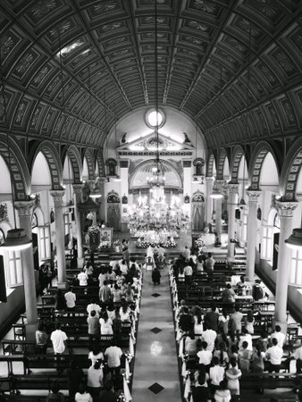 The interior of the Roman Catholic Church(The Nativity of Our Lady Cathedral), Samutsongkhram, Thailand. built in 1890. One of the beautiful gothic style building in Thailand.