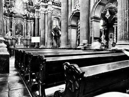 Pews in the Basilica of St. Martin and Oswald in Weingarten, Germany