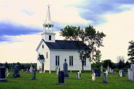 Old weathered church and cemetery near St Stephen, New Brunswick, Canada