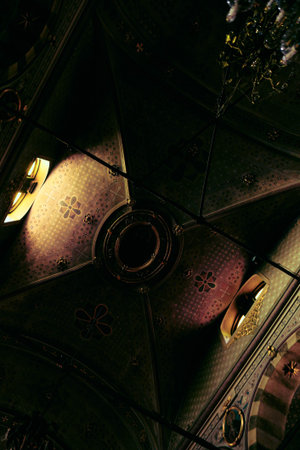 Abstract blurred background with interior of Katedra Sw Jana Chrzciciela or Cathedral of St John the Baptist in Wroclaw, Poland.