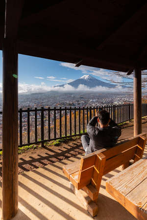 A Tourist take a photo view point at the Fuji Mountain scene