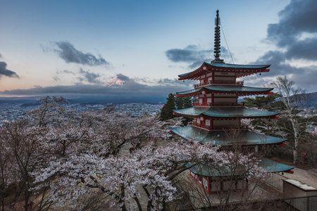 Captivating Bliss: The Majestic Chureito Pagoda and Fuji Mountain in April