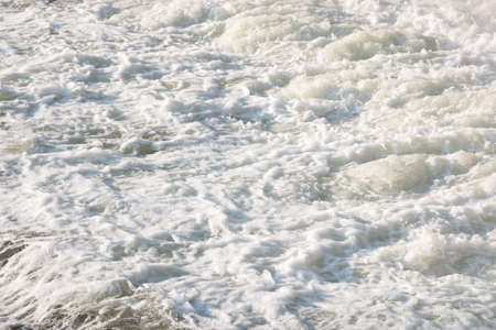 Tidal bore, ocean waves covered with white foam, abstract background