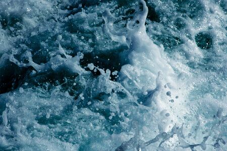Blue sea water with white foam and waves. Abstract nature background.